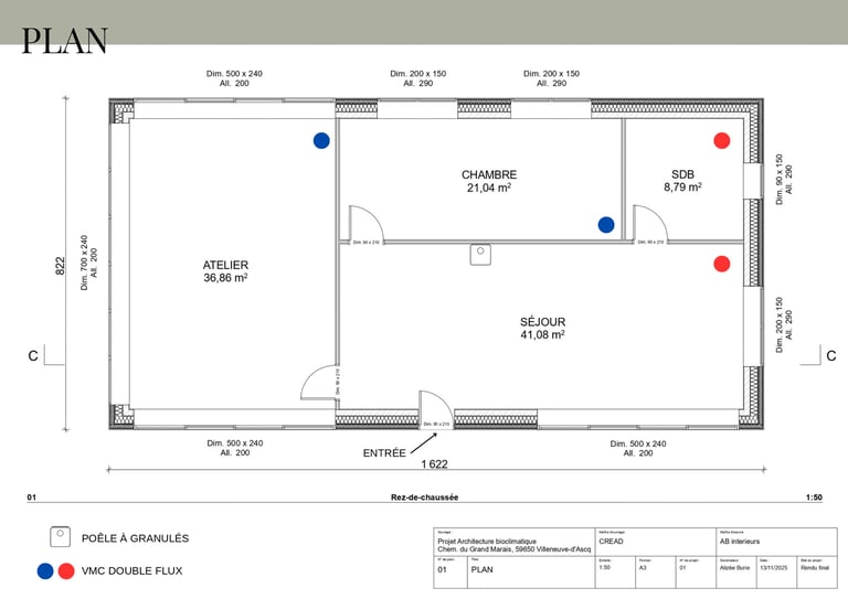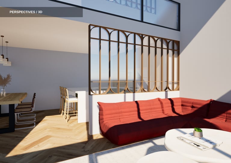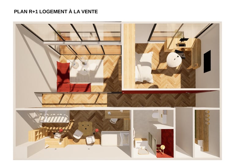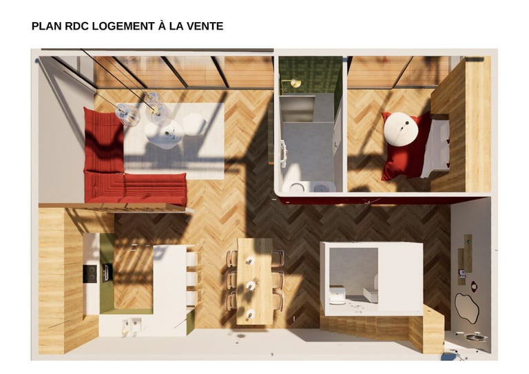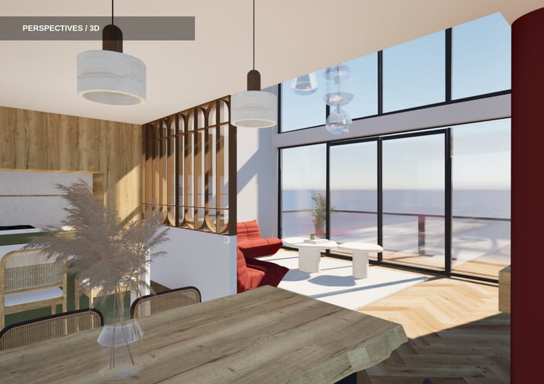 Au sein du groupe, j'ai travaillé plus particulièrement sur la conception des logements mis à la vente. L'objectif était de proposer un logement familial d'environ 110 m² pour cinq personnes, en réfléchissant à une organisation des espaces à la fois fonctionnelle, confortable et adaptée au quotidien des habitants.