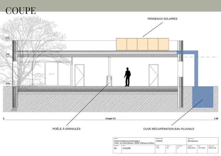 Conception d’une résidence pour artiste, pensée selon les principes de l’architecture bioclimatique.